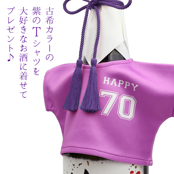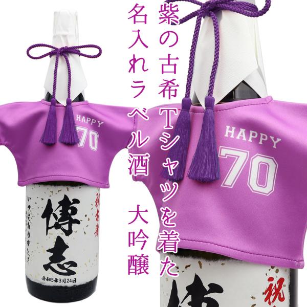 古希のお祝い 男性 プレゼント モンドセレクション5年連続金賞の老舗蔵が造る 紫の古希Tシャツを着た 名入れラベル酒 大吟醸 一升瓶 日本酒 古希祝い 父