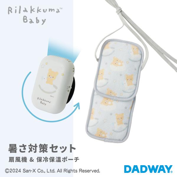 Rilakkuma Baby リラックマベビー 暑さ対策 セット 扇風機 & 保冷保温ポーチ | リラックマ ひんやりグッズ お出かけ 抱っこひも ベビーカー