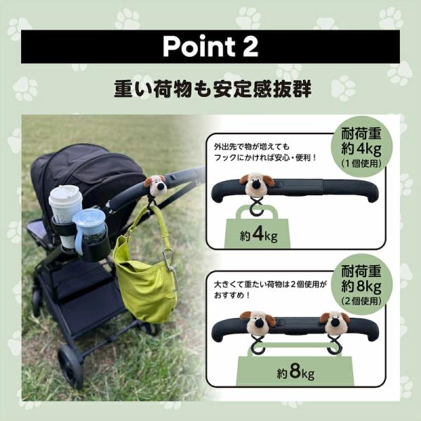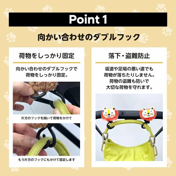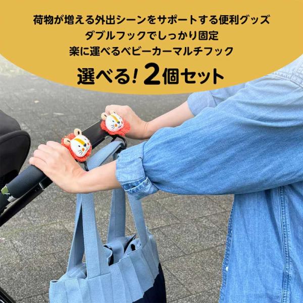 【MONTA モンタ】 ベビーカーフック 2個セット バギーフック マルチフック ダブルフック 荷物掛け くま ライオン いぬ 荷物 車 自転車 バッグ プレゼント 出産祝