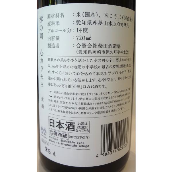 孝の司 心カラセヨ 生酒 720ml 要冷蔵 四合瓶 日本酒 清酒 愛知 柴田酒造 こうのつかさ