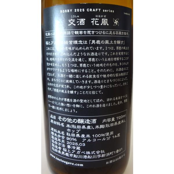 稲とアガベ 交酒花風 720ml 要冷蔵 四合瓶 日本酒 清酒 秋田 稲とアガベ醸造所 いねとあがべ