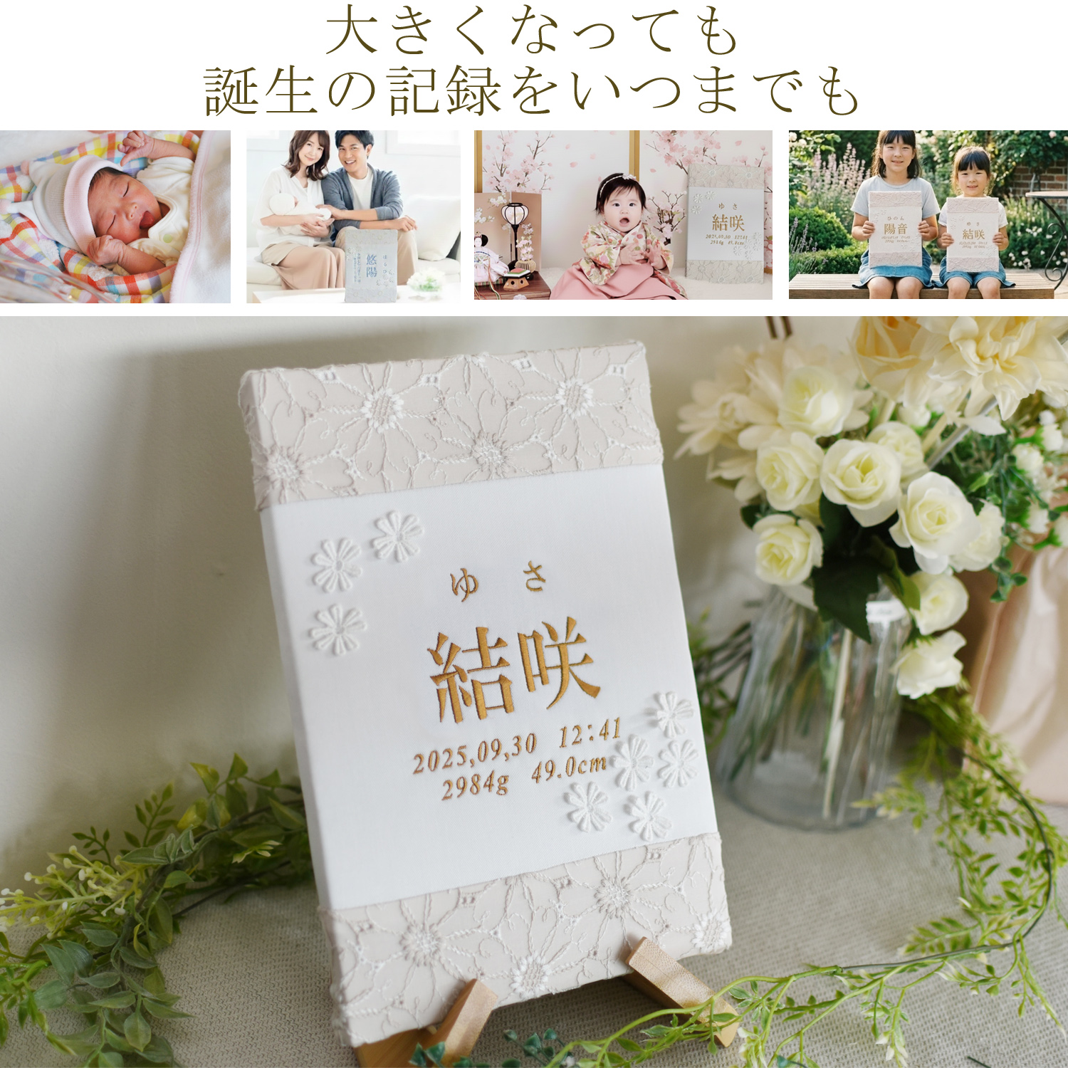 命名書 刺繍 刺しゅう オーダー 名入れ 名前旗 赤ちゃん ベビー お七夜 節句 七五三 ひな祭り 出産祝い アートのような命名書 インテリア おしゃれ caf-0101