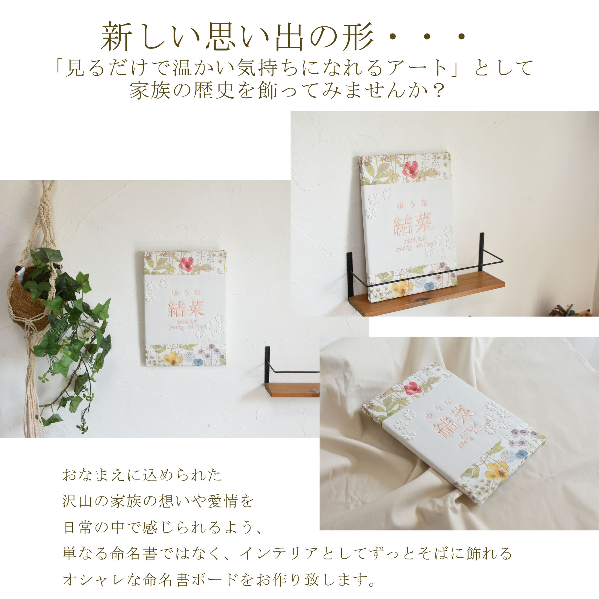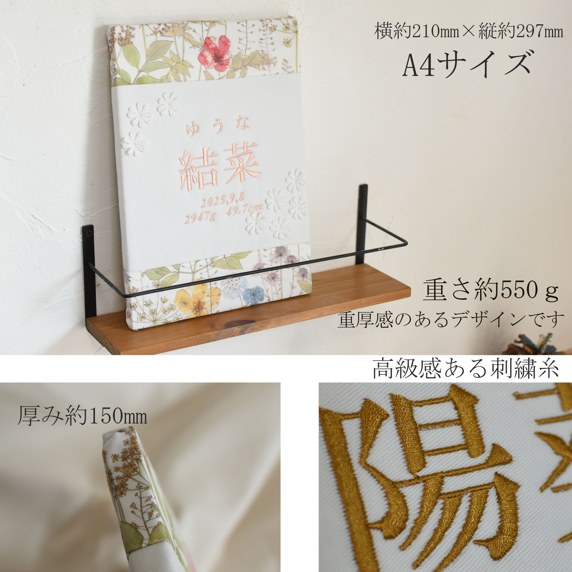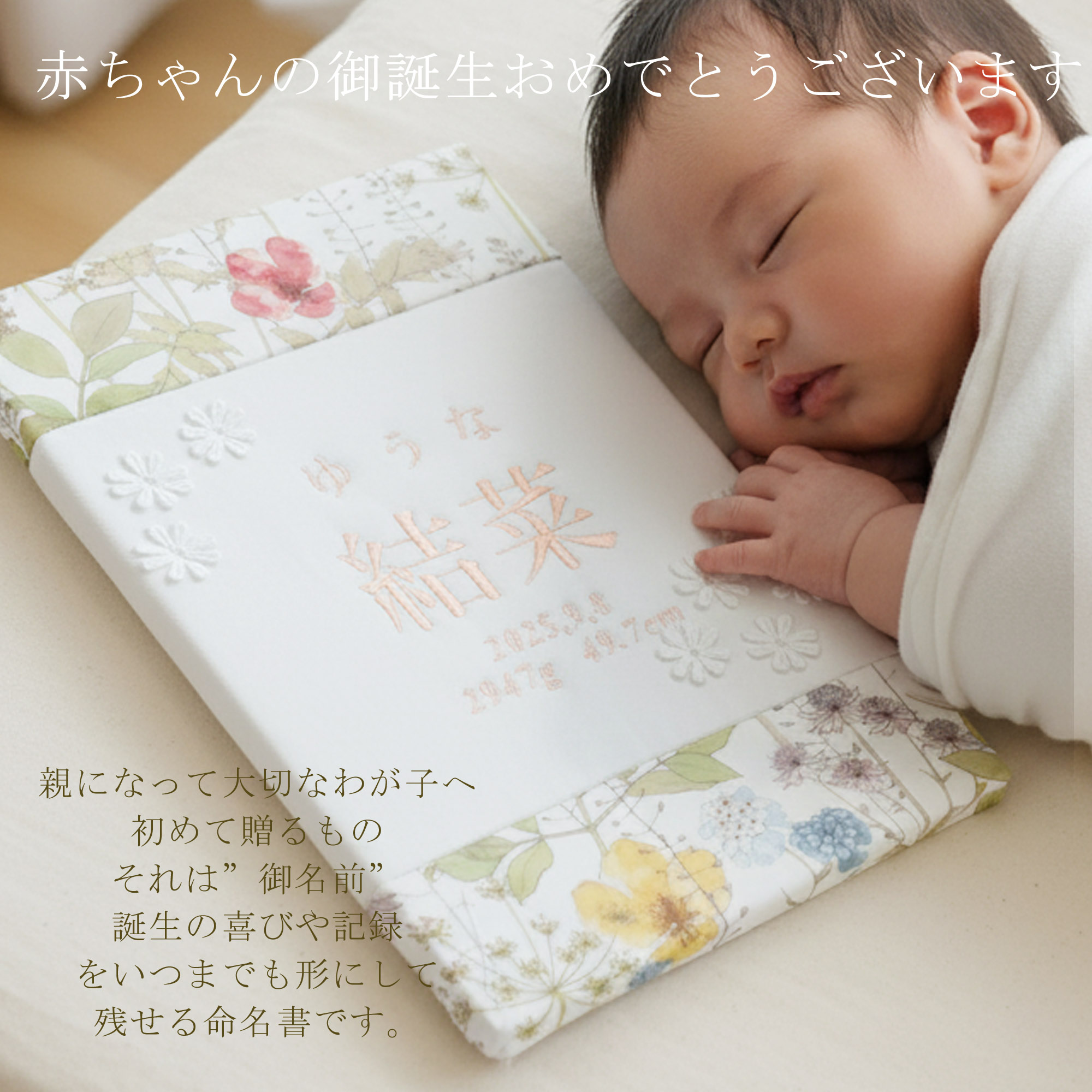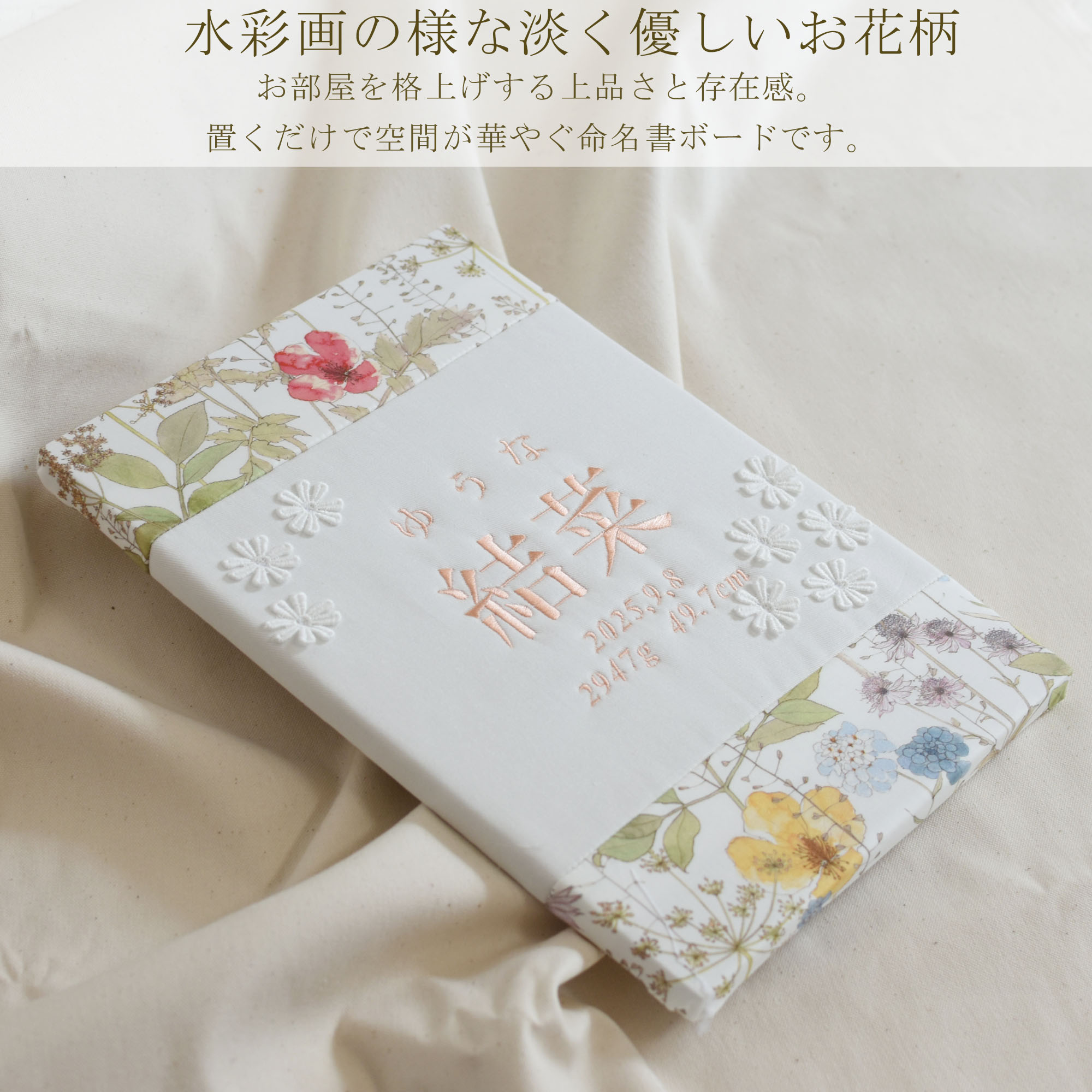 アートのような命名書 刺繍 名入れ 名前旗 赤ちゃん ベビー お七夜 節句 七五三 ひな祭り 出産祝い インテリア リバティ 花柄 caf-0104