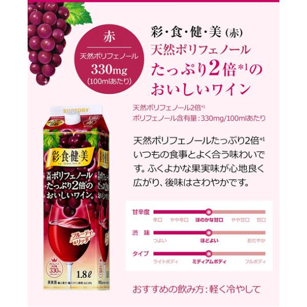 彩食健美 天然ポリフェノールたっぷり2倍 1,800ml×6本 ケース 送料無料 (1.8L)(紙パック) 赤ワイン 長S 虎