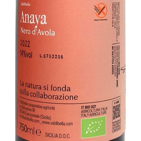 ヴァルディベッラ シチリア アナヤ 赤ワイン イタリア 750ml 酸化防止剤無添加 オーガニック認証 自然派 ナチュラルワイン