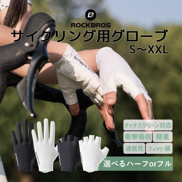 サイクルグローブ ハーフ フル SBRパッド 滑り止め 通気孔 指ぬき スマホ操作 薄手 フィット感 軽量 春夏 ROCKBROS