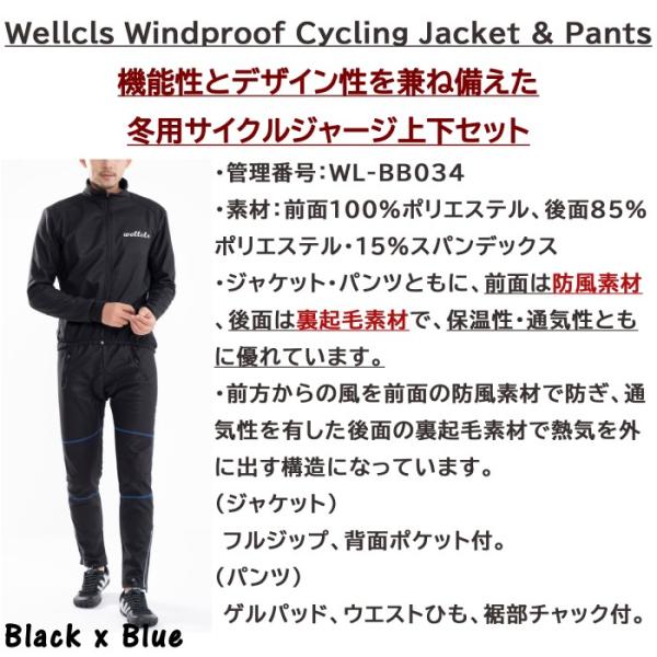 ウェルクルズ 冬用 サイクルジャケット 上下セット メンズ ウインドブレーク 防風 防寒 サイクルジャージ サイクルウェア 自転車 ロードバイク 裏起毛 WL-BB034