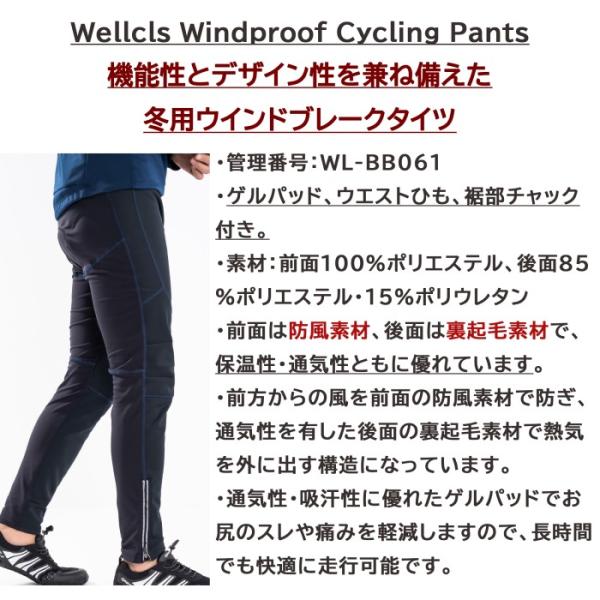 ウェルクルズ 冬用 サイクルパンツ メンズ ゲルパッド付 ウインドブレーク 防風 防寒 サイクルジャージ サイクルウェア 自転車 ロードバイク 裏起毛 WL-BB061