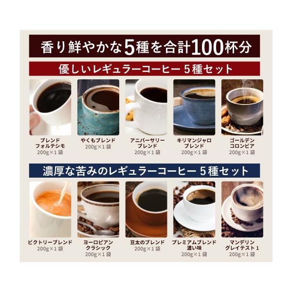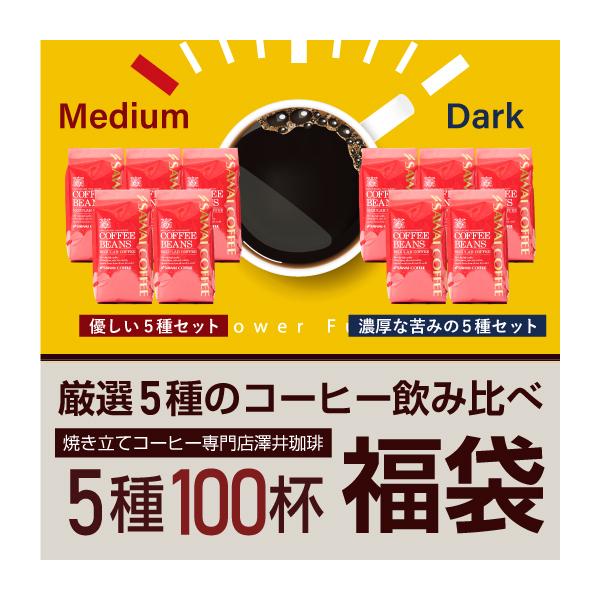 焙煎したて コーヒー 豆 福袋 5種 5袋 飲み比べ アソート 200g 100杯分入り 福袋 優しい味 濃い味 【RD】 【TS】