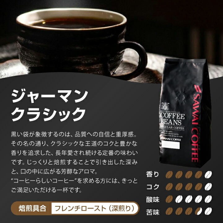 コーヒー 豆 粉 苦味が冴える王道の味 澤井珈琲 ジャーマンクラシック 1.2kg セット 400g×3袋 苦味 しっかり コク 深い 香り 大容量 【RD】 【TS】