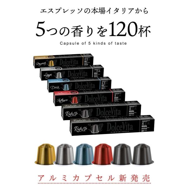 ネスプレッソ 互換 カプセル コーヒー 本場 イタリア製 互換 アルミカプセル DolceVita 5種類 120カプセル ネスプレッソ用 リストレット インテンソ