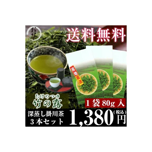 送料無料 竹の露 深蒸し茶 80g × 3本セット 掛川市農協 国産茶葉100% まろやかで飲みやすい