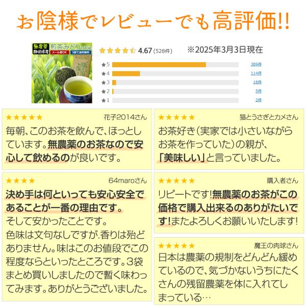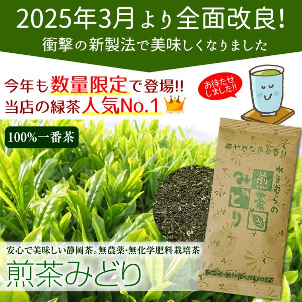 新製法でリニューアル 『煎茶みどり100g』  無農薬茶 よりどり3袋ごとお買い上げでメール便送料無料の対象商品