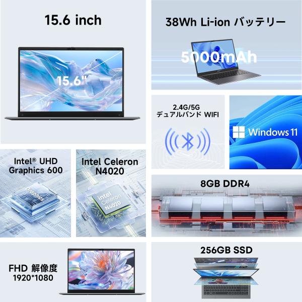 爆買 WPS Office付き ノートパソコン Win11 ノートpc 初心者向け 格安 15.6型 CHUWI Herobook Plus 8GB+256GB 軽量 Webカメラ WIFIモデル Intel N4020 英語配列