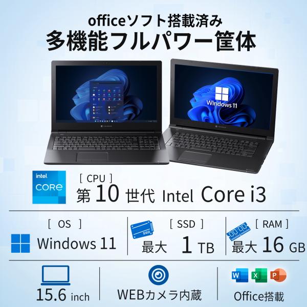 【テンキー+カメラ】ノートパソコン Windows11 Core i3 第10世代 東芝 dynabook BJ65 Office搭載 SSD1TB メモリ16GB 15.6インチ 中古 パソコン PC