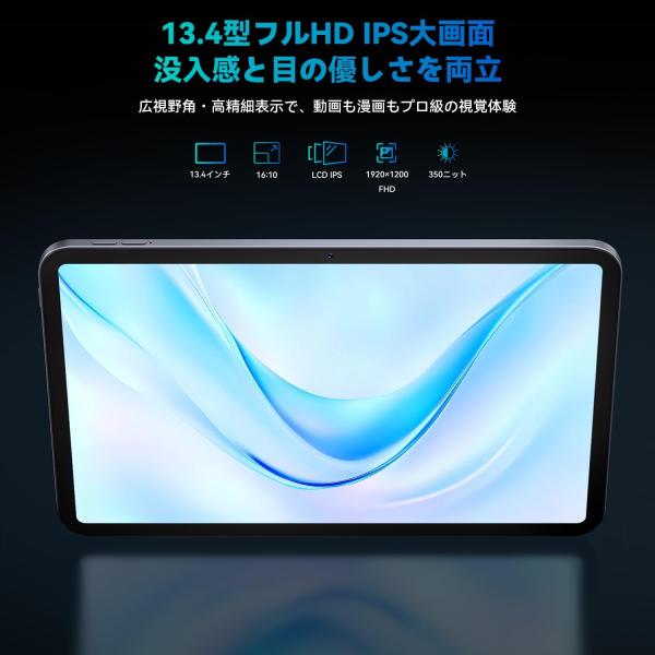 タブレット 13インチ Wi-Fiモデル 256GB+20GB 1TB拡張 IPS液晶 13.4インチ 2.7K解像度 Android Widevine L1高画質 GPS 2.4G/5GWifi Bluetooth5.0 Type-C