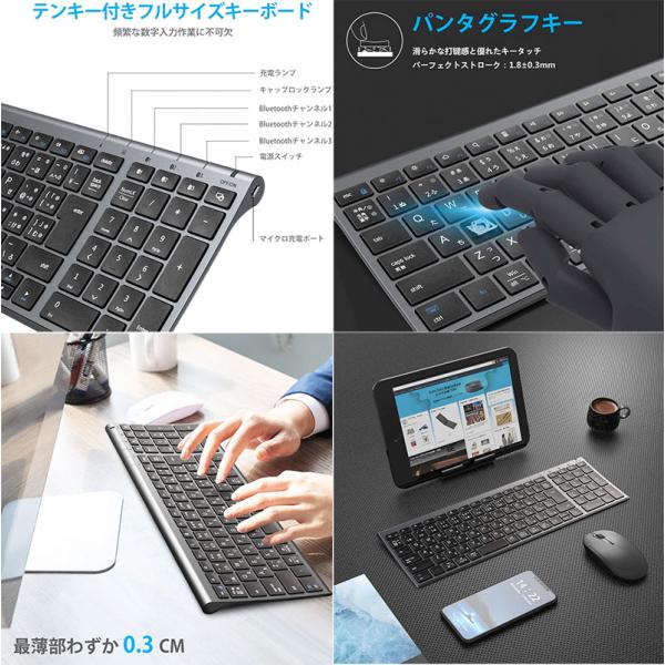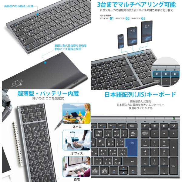 iClever BK22 ワイヤレスキーボード 日本語配列 Bluetooth 5.1 テンキー付き グレーブラック IC-BK22GB 正規販売店