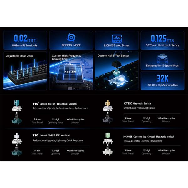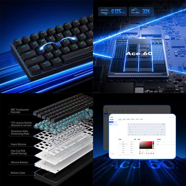MCHOSE ACE60 Pro 60% 英語配列 有線 8000Hz ラピッドトリガー対応 KTEK Magnetic Switch 61キー ゲーミングキーボード