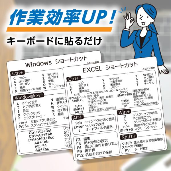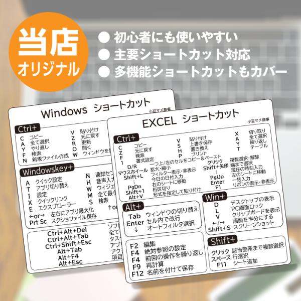 ショートカットキー シール 日本語版 2枚セット Windows Excel エクセル ウィンドウズ ステッカー 短縮入力 一覧 事務作業 2枚セット pcst2m
