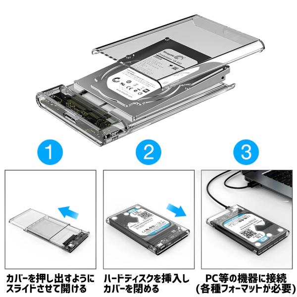 SSD/HDDケース クリア USB3.0対応 外付け 2.5インチ SATA 外部電源不要 スケルトン 4個までメール便同梱可能【M3】