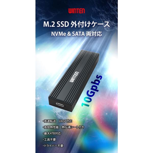 SSD M.2 ケース SATA NVMe PCIe両対応 1年保証 USB3.2 Gen2 10Gbps M key B&M key NGFF アルミ 2280 2260 2242 2230 最大4TB WTSSD-E02-BK