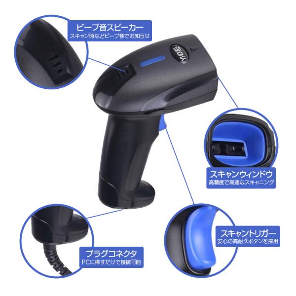 バーコードスキャナー JANコード対応 1次元 1Dコード USB有線接続 高速高性能スキャン 連続読み取り ドライバ不要 レジ 倉庫 図書館 物流 YHD1100L1D