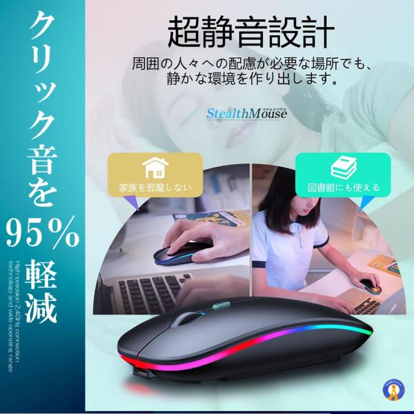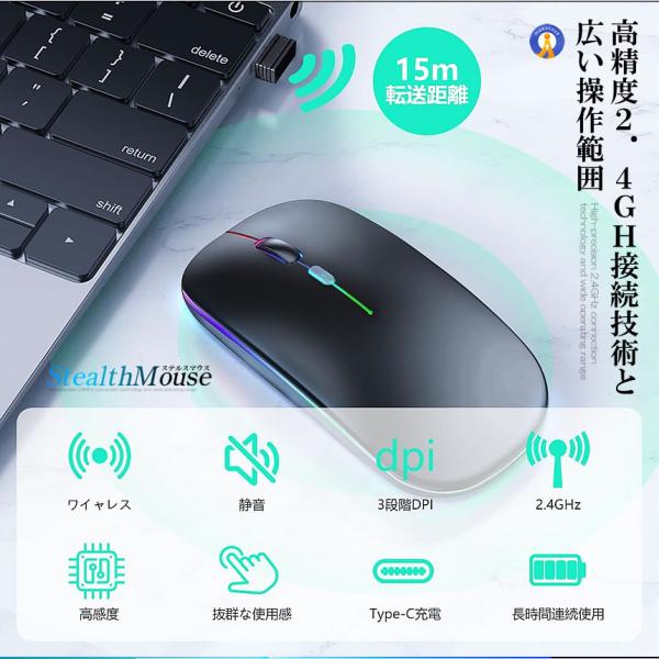 マウス 無線 2025超薄型 高精度 高感度 ワイヤレスマウス 静音 3段階DPI切替 Type-C 充電式 SEIYES