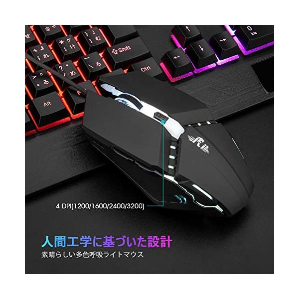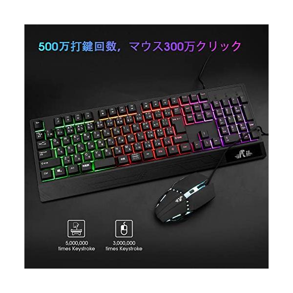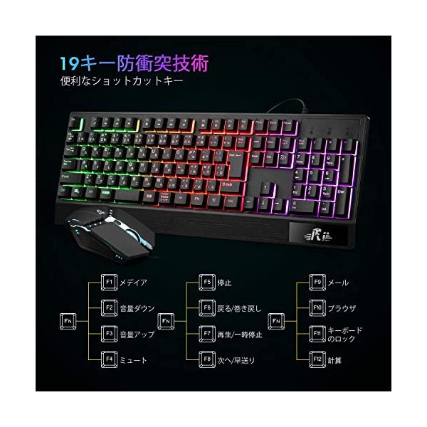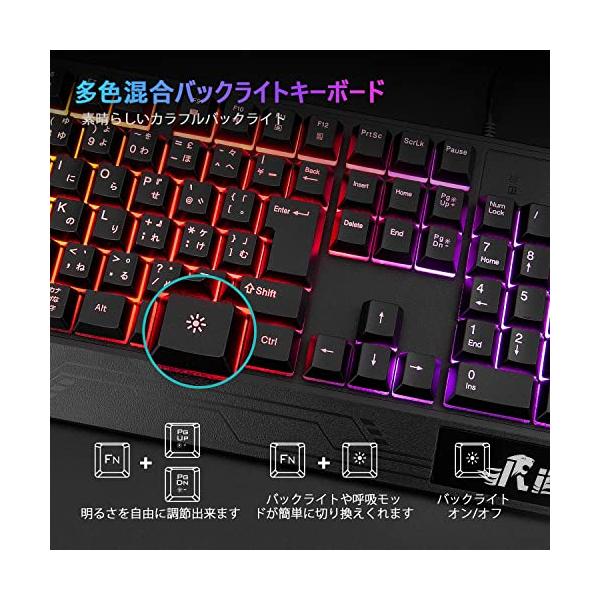 Rii ゲーミング キーボード マウス セット USB有線 RGBバックライト 109キー日本語配列 リストレスト「無変換」/「変換」キー付き