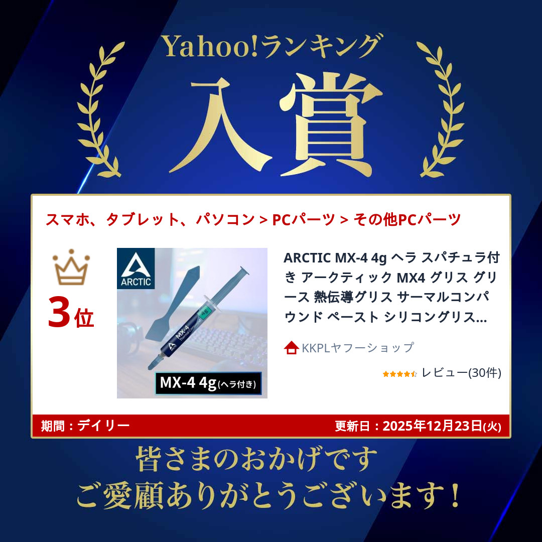 ARCTIC MX-4 4g ヘラ スパチュラ付き アークティック MX4 グリス グリース 熱伝導グリス サーマルコンパウンド ペースト シリコングリス CPU 冷却グリス