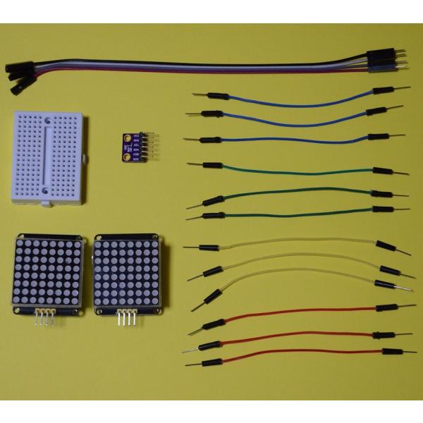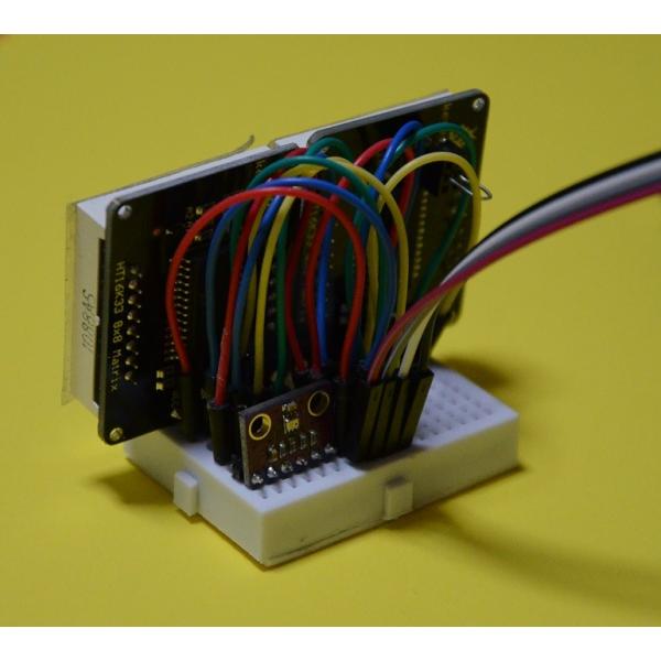 新幹線のアレみたいに… ラズパイ電子工作キット ミニブレッドボードシリーズ1 Piとケーブル4本で繋ぐ 全てI2Cで温度・気圧測定&電光表示するキット廉価版