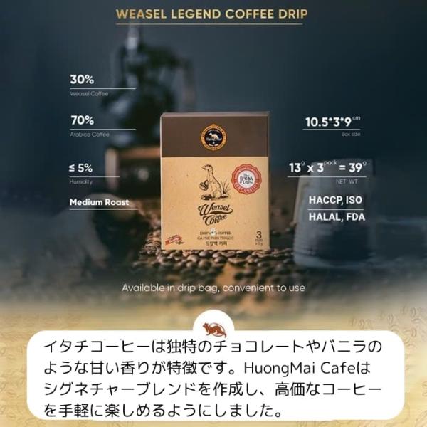 イタチコーヒー Weasel Coffee ドリップコーヒー 39g 3パック入り (13g/パック) 世界一希少なコーヒー 王様 海外 お土産 ジャコウネコ コピルアク お中元