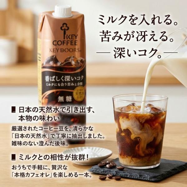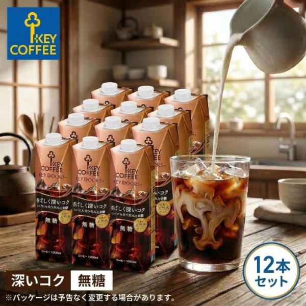 12本 セット キーコーヒー KEY DOORS+ リキッドコーヒー 深いコク無糖 1L 1000ml 紙パック アイスコーヒー 送料無料【北海道・沖縄・離島配送不可】