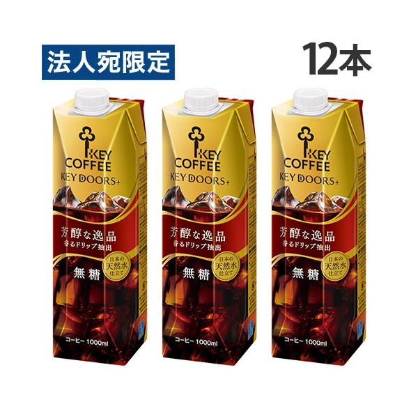 アイスコーヒー 無糖 1L 12本 リキッドコーヒー テトラプリズマ KEY DOORS+ キーコーヒー『法人宛のみ送料無料(一部地域除く)』