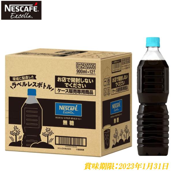 ネスカフェ エクセラ ボトルコーヒー 無糖 ラベルレス 900ml ×24本 (12本入×2ケース) 送料無料