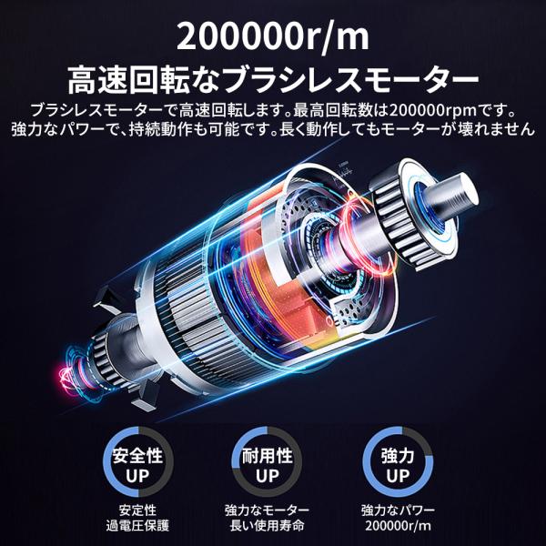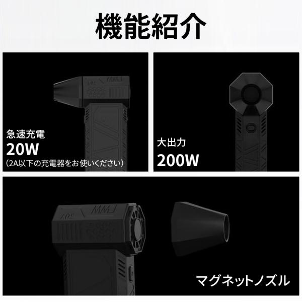 【8000mAh・超強力風速80m/s】エアダスター 電動 ブロワー 200000RPM 風量3段階 超強力 充電式 小型 ノズル付 空気入れ PC掃除 キーボード 車内 洗車用
