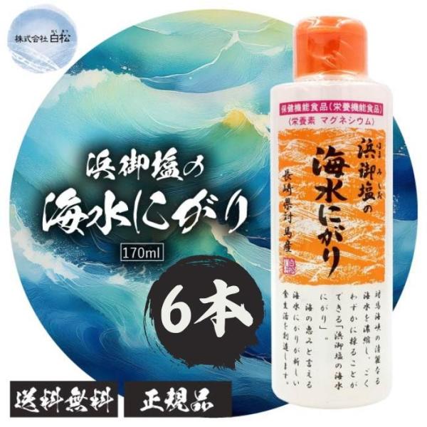 【セール限定ポイント5倍】浜御塩の海水にがり 170ml×6本セット 長崎県対馬産 にがり 養機能食品 マグネシウム 天然 無添加 にがり 長崎県対馬産 ご飯 味噌汁