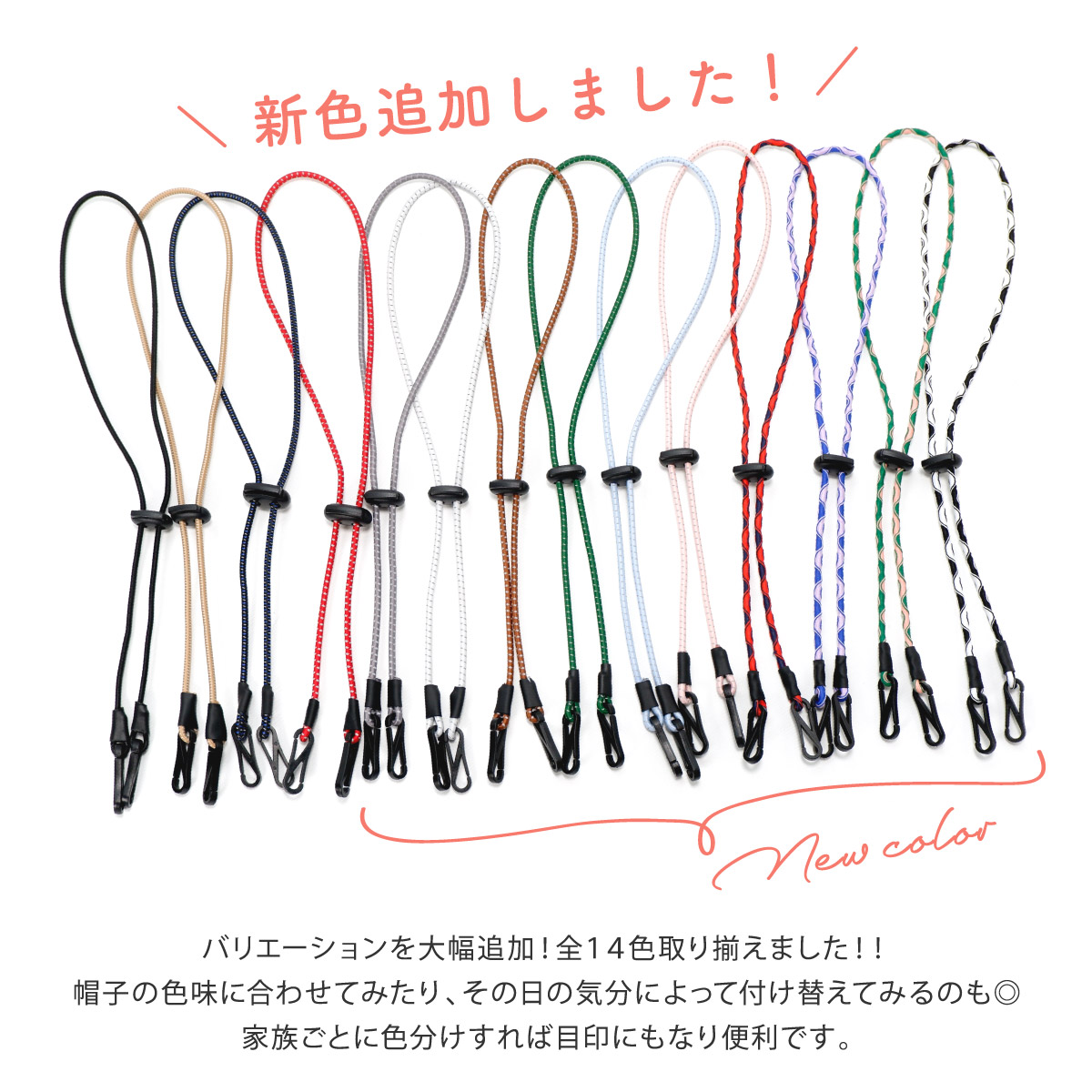 カラーハットストラップ 帽子 ストラップ あご紐 調整 風で飛ばない レディース メンズ キャップ ハット マスクストラップ 自転車 便利