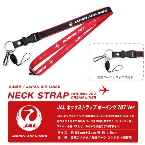 JAL ネックストラップ BOEING 787 DREAM LINER Ver コネクタ エアライン ボーイング 航空 飛行機 ひこうき 仕事 首かけ 携帯 スマホ 鍵 パス グッズ アイテム