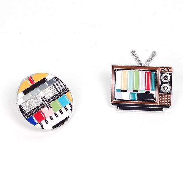 ピンバッジ ファッション ブローチ テレビ テストカード 放送休止 テストパターン メンズ レディース ラペルピン バッジ アクセサリー、送料込み、送料無料