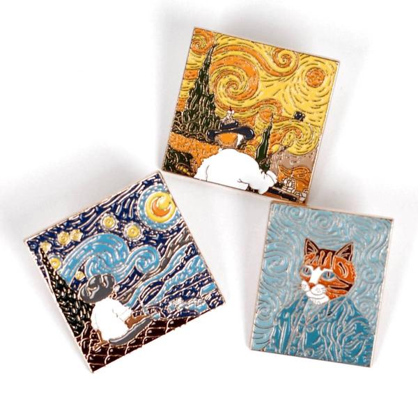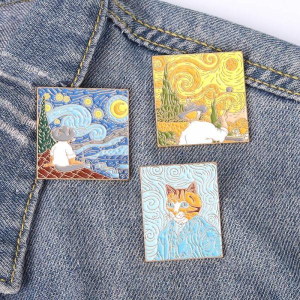 ピンバッジ ファッション ゴッホ パロディー 名画 モチーフ イラスト ピンブローチ メンズ レディース ラペルピン バッジ アクセサリー、送料無料