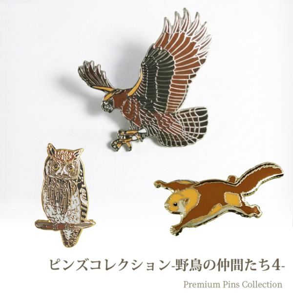 ピンバッジ 野鳥 ピンズ 4 日本 ピンバッチ バッジ イヌワシ コノハズク フクロウ ムササビ 森の仲間 D-333 D-326 D-328 40点迄メール便OK(da1a051)