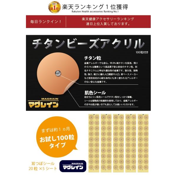 お試し100粒 耳つぼシール 肌色チタンビーズアクリルシール お肌に優しいチタン粒 阪村研究所 正規品 耳つぼ説明書付 マグレイン