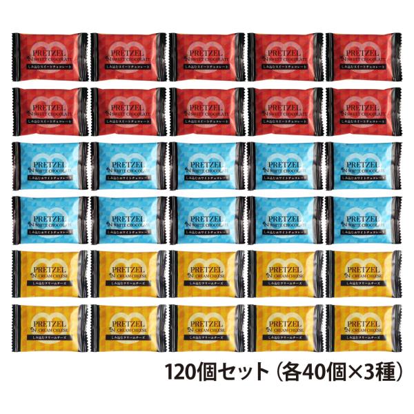メガ盛り ザクッと プレッツェル 3種アソート 各40個セット 送料無料 沖縄 クリスマス バレンタイン ホワイトデー バラマキ おやつ チョコ チーズ おつまみ