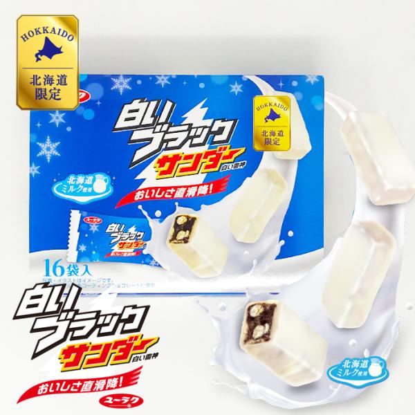 白いブラックサンダー (16個入) 箱タイプ / ユーラク 有楽製菓 / ホワイトチョコ チョコレートクッキー / 個装 北海道限定 北海道お土産