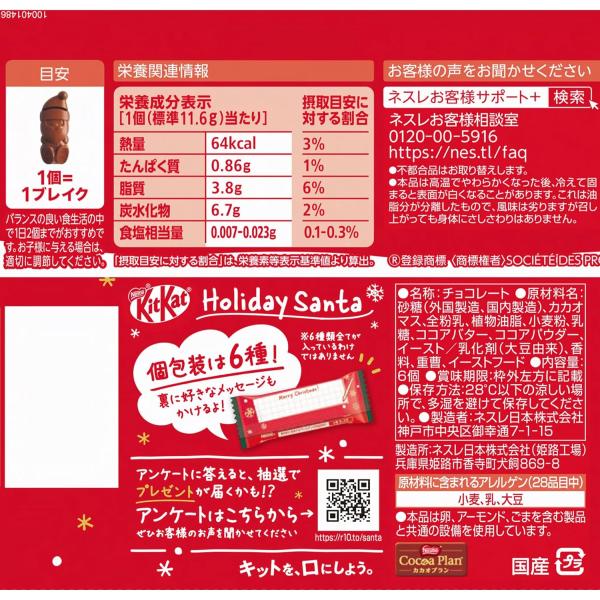 ネスレ キットカット ホリデイサンタ 6個入り×4袋 ギフト プレゼント チョコ 子供 大人 女の子 男の子 しゃれ サンタクロース 贈り物 かわいいり おしゃれ