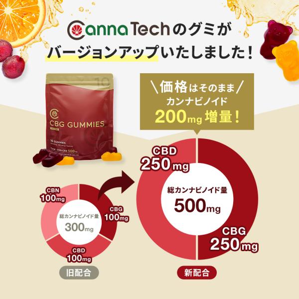 CBG グミ CBD 配合 10粒 500mg CBG 250mg CBD 250mg ( CBG 25mg CBD 25mg /粒) ブロードスペクトラム CannaTech cbdグミ ベア 日本製 爆買