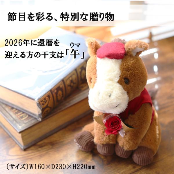 還暦祝い 干支 午年 馬 ブリザーブドフラワー 還暦 長寿祝い ちゃんちゃんこ 男性 女性 父 母 刺繍 プレゼント 名入れ ぬいぐるみ 送料無料 赤 60歳