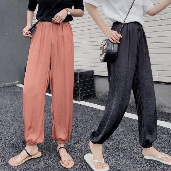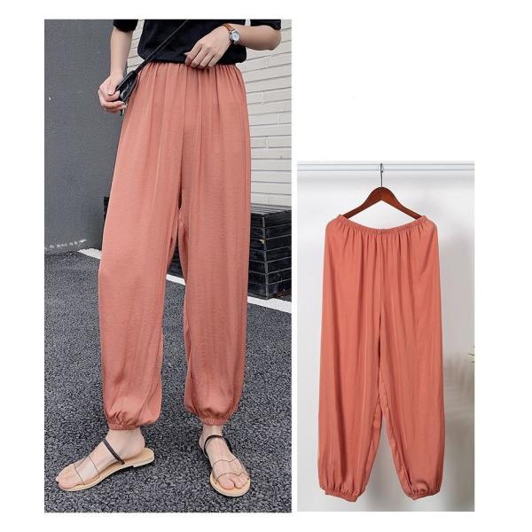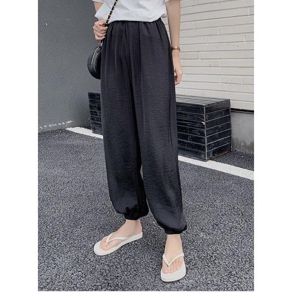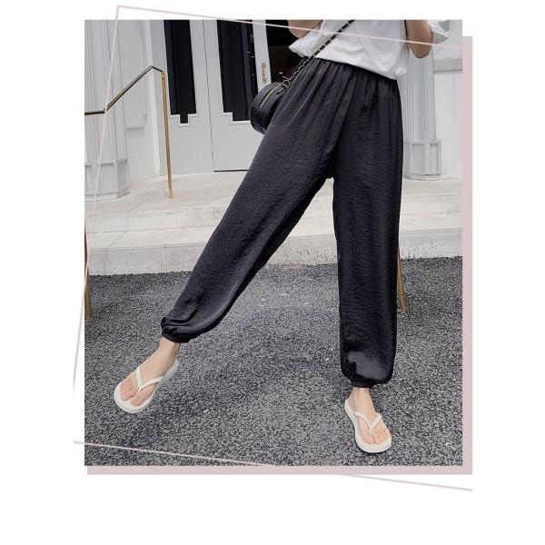 サテンパンツ レディース 裾絞りリラックス フレアパンツ 春夏 パンツ ボトムズ ウエストゴム 涼しげ 吸汗速乾 通気性 紫外線 母の日