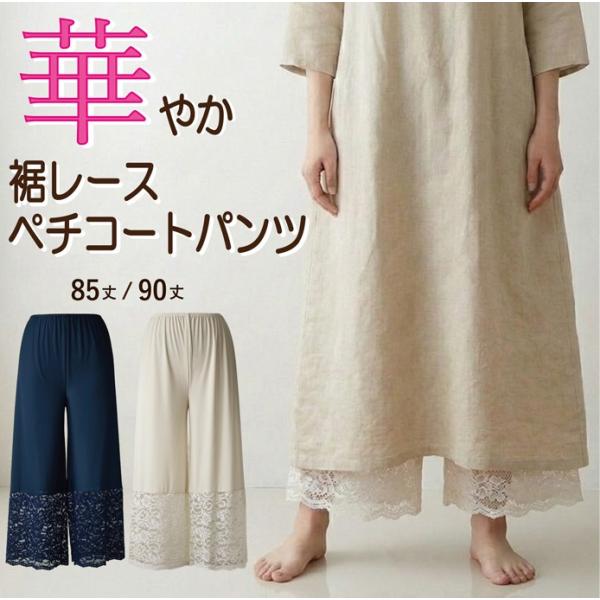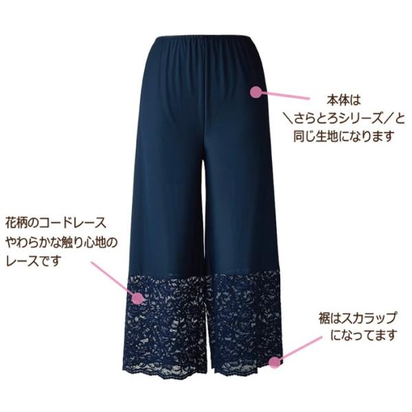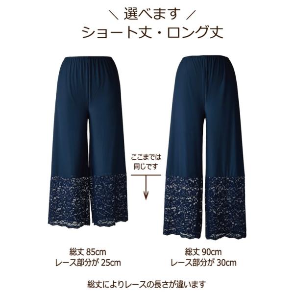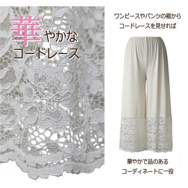 華やかな 裾レース ペチコ−トパンツ スカラップ 【レイヤード フレアパンツ ワイドパンツ ワンピース パーティ ドレス コードレース 低身長 高身長】