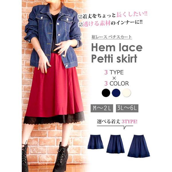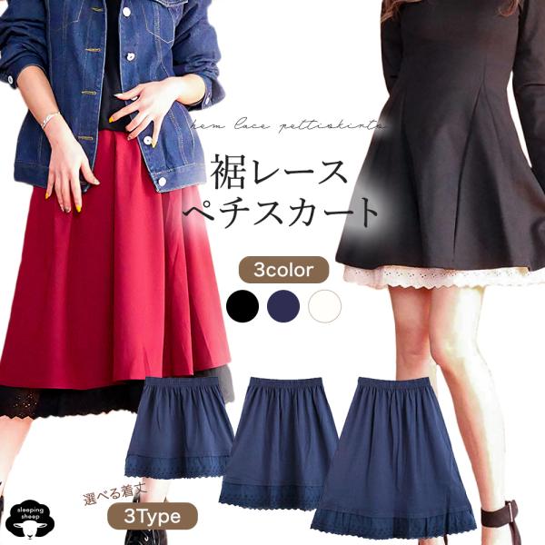 ペチコート ペチスカート スカート レース 見せる 綿 コットン 100 % ロング 大きいサイズ スカートの下に履くもの 送料無料